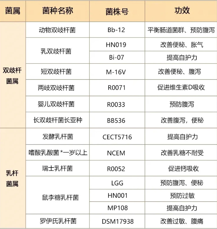 所以我们在挑选益生菌的时候首先要判断好菌株是否包括在这14种菌株里,不包括的不要选择。