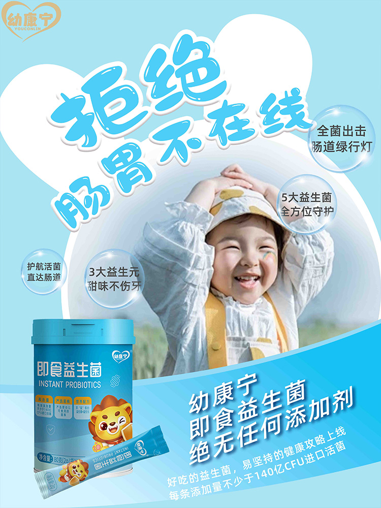 1.进口的原材料生产严格筛选菌株精心研制营养配方,高含量每袋包含140亿CFU,活菌,添加多种益生元配方,(低聚果糖、低聚异麦芽糖、低聚半乳糖);益生元促进益生菌增值,有甜味不伤牙。